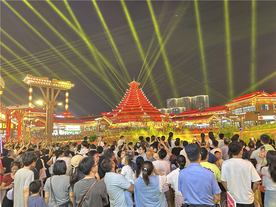 假期里,懷化“一軸四點(diǎn)”“三江一灣”多個特色景點(diǎn)成為游客打卡熱門地,玩法各異的體驗(yàn)吸引眾人駐足。榆樹灣文旅商綜合體從早上開始迎來游客,雜技演員為游客表演“爬桿”“蹬技”等絕活,吸引了不少游客的目光。懷化東盟集則以“異域風(fēng)情+特色消費(fèi)”引爆假日熱潮,精彩馬戲表演、篝火晚會輪番上演,還推出冬陰功湯、海南雞飯、越南春卷等美食盛宴,市民不出國門便能感受懷化與東盟的文化交融。夜幕降臨,榆樹灣、天問島、東盟集打開五光十色的彩燈,璀璨的夜景引來客流高峰,精彩的節(jié)目讓游客歡呼陣陣。新獲評國家4A級景區(qū)的中方縣荊坪古村,青石板路上游人如織,農(nóng)家樂座無虛席,“千年古驛·樂歸荊坪”的魅力持續(xù)釋放。