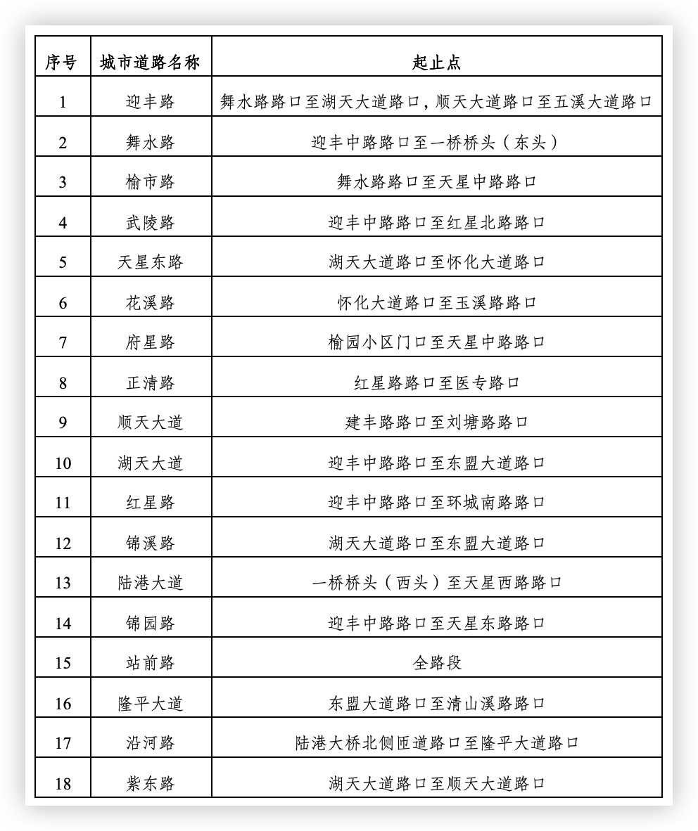 根據(jù)懷化城區(qū)機動車違法停車管理工作實際情況,現(xiàn)將天星西路、鐵北南路機動車違法停車行為嚴(yán)格管理路段調(diào)整為非嚴(yán)格管理路段,增設(shè)隆平大道、沿河路、紫東路為機動車違法停車行為嚴(yán)格管理路段,迎豐路、順天大道部分路段做優(yōu)化調(diào)整。城區(qū)調(diào)整后的嚴(yán)格管理路段如下:
